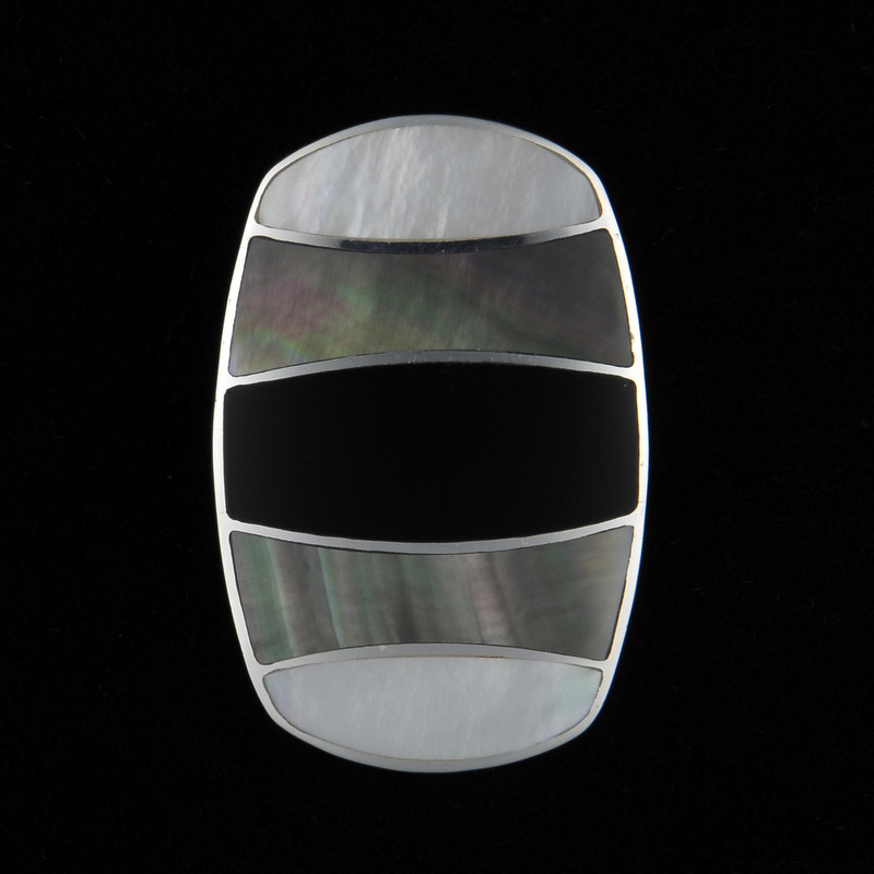 This is a very classy pendant with inserted strips of solid silver. Length 5.5cm, Width 3.5cm.