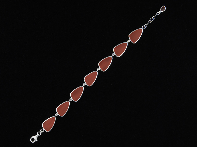 This bracelet is elegant with its seven piece unusual shape joined together with solid silver links and is adjustable. Length 22.0cm (with ajt links), Width 1.2cm